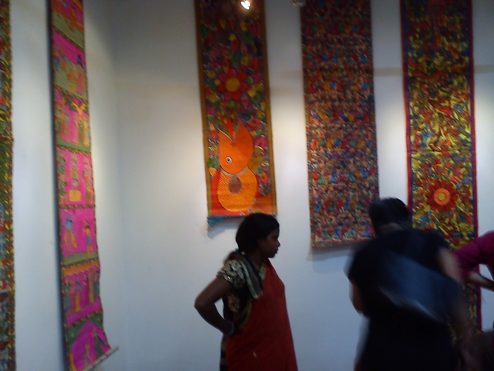 They ask good questions. And they answer difficult ones too. Khadu, Radha and their daughter Rabia (that's her in the picture with the hanging scrolls) - who sang to us about everything from a fish's wedding, the 9/11 attack, a snake-goddess, and a story from the Ramayana - are Muslims.They just do what they do. And it is delightful.